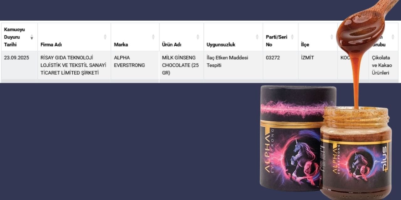 Tarım ve Orman Bakanlığı “Sağlığı Tehlikeye Düşürecek Gıdalar” listesini güncelledi. Listeye 1 yeni ihlal eklendi. Alpha Everstrong adlı markanın çikolatalı macununda ilaç etken madde tespit edildi.