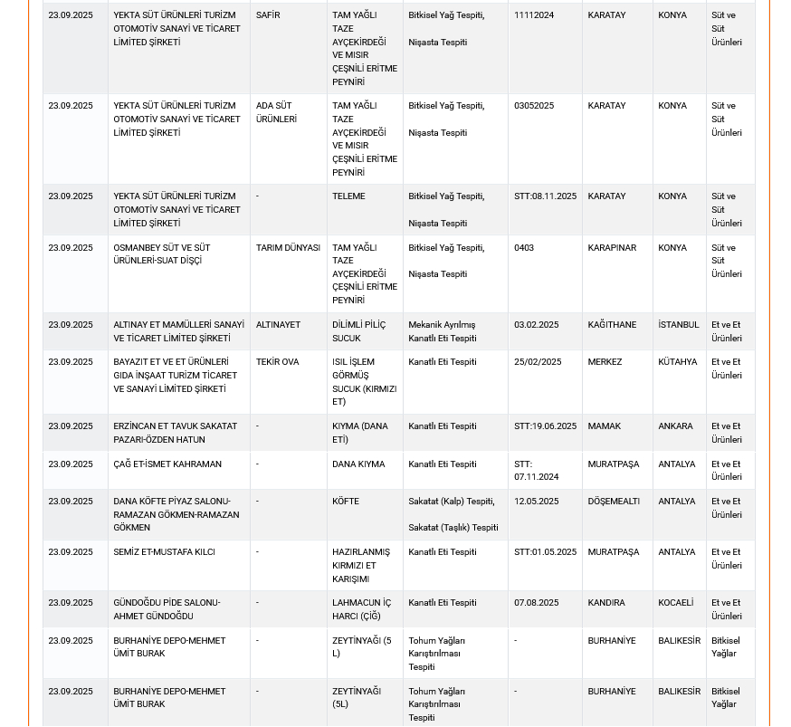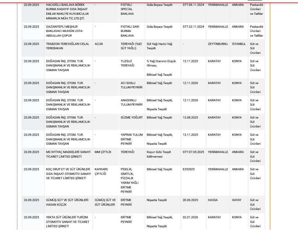 “Taklit ve Tağşiş Yapılan Gıdalar” listesine ise 38 yeni ürün eklendi.