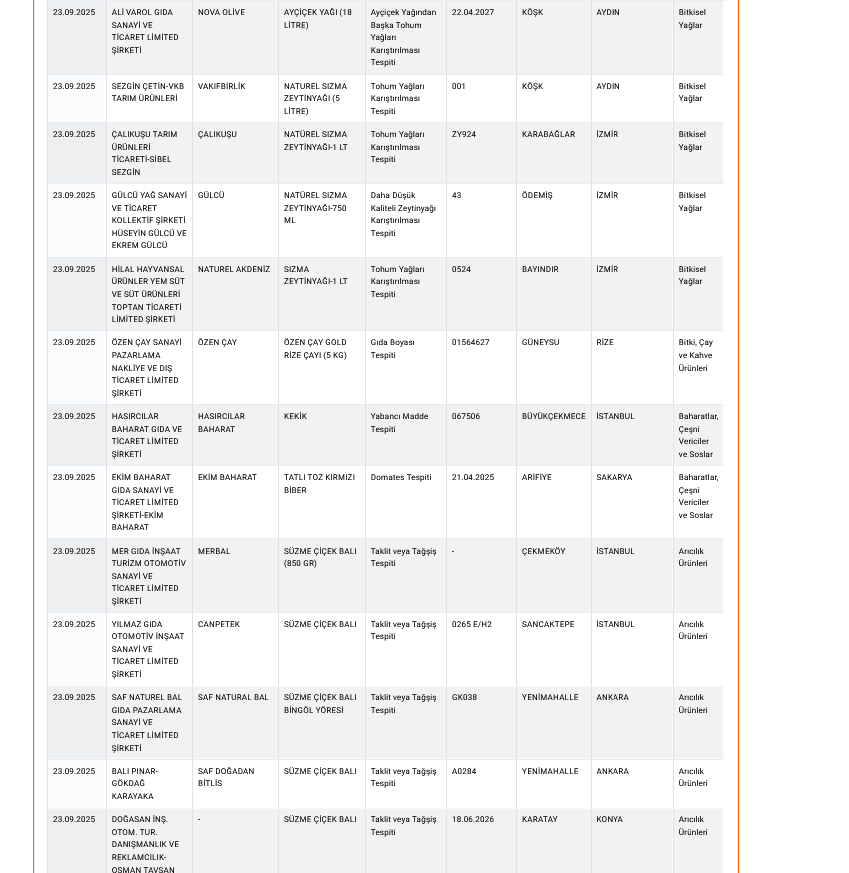 Tarım ve Orman Bakanlığı, gıda ürünlerinde taklit ve tağşiş yapan markaları ‘guvenilirgida.tarimorman.gov.tr’ internet adresi üzerinden açıklamaya devam ediyor. Sitede ‘Sağlığı Tehlikeye Düşürecek Gıdalar’ ile ‘Taklit ve Tağşiş Yapılan Gıdalar’ başlıkları altında taklit ve tağşiş yaparak sağlığı tehlikeye düşüren firmalar, markalar ve ürünler yer alıyor.